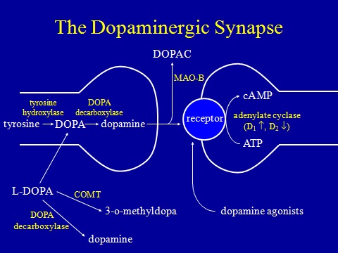 - Making the same amount of dopamine go further by inhibiting its breakdown in the synapse (the connection between nerve cells). Examples are selegeline and rasagiline.